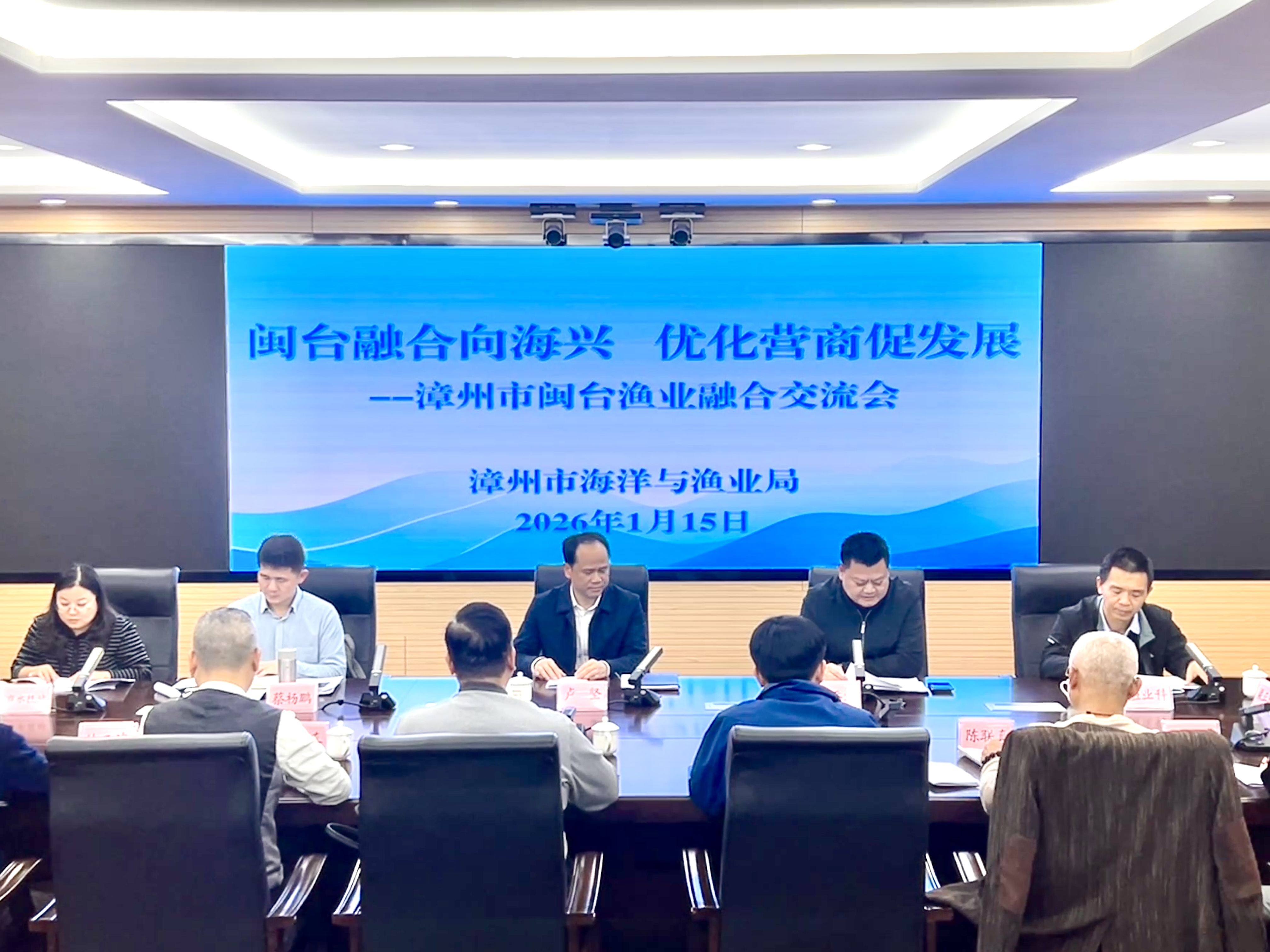 1月15日,漳州市海洋与渔业局成功举办闽台渔业融合交流会。会议以“闽台融合向海兴,优化营商促发展”为主题,特别邀请漳州市台商协会、涉渔台企以及绿新集团等企业代表齐聚一堂,共叙两岸渔业情,共话合作新蓝图。